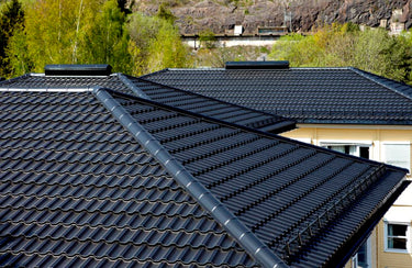 PVC coated steel finish replicates the appearance of traditional clay tiles while resisting corrosion, moss, and weathering over time.